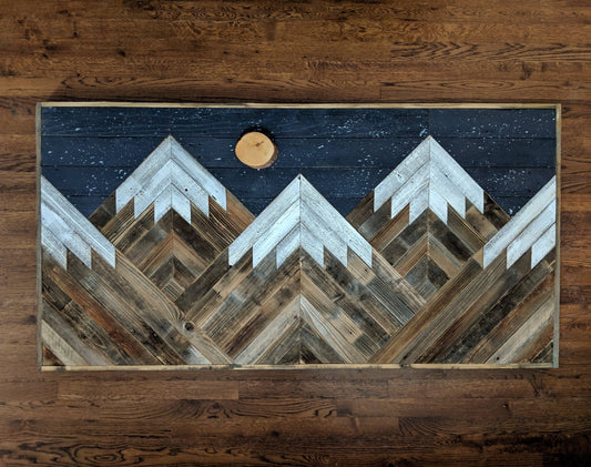 Rustic mountain wood wall art with night sky